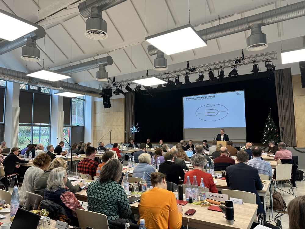 Zuvor hatten die Synodalen einen Vortrag von Professor Roland Schöttler von der Ev. Hochschule Bochum gehört. Er sprach über „Kirche als lernende Organisation“. Kirche erscheine heute nicht mehr als Institution, also als unhinterfragtes Ordnungs- und Regelsystem, sondern als Organisation im Wettbewerb mit anderen. Sie müsse angesichts sinkender Mitgliederzahlen eine neue Rolle, eine neue Relevanz finden. Er empfahl, sich selbst verstärkende Kreisläufe zu erkennen, sichtbar zu machen und zu durchbrechen, diese zu verändern und sich an der Vision, an der Botschaft, zu orientieren. Veränderungen beträfen nicht „den Kern, die Botschaft, sondern die Organisation“.